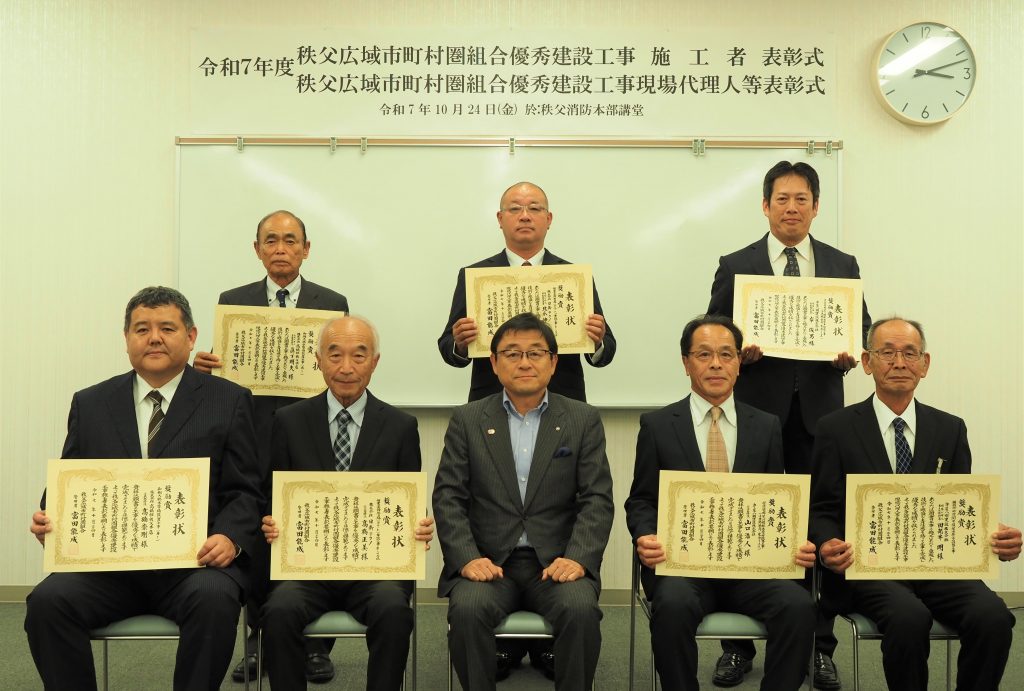 秩父広域市町村圏組合では、本組合が発注した建設工事を優秀な成績で完成した施工者並びに現場代理人等を表彰することにより技術及び意欲向上を図り、工事の品質向上と適正な施工に資することを目的に表彰制度を令和2年度から実施しています。