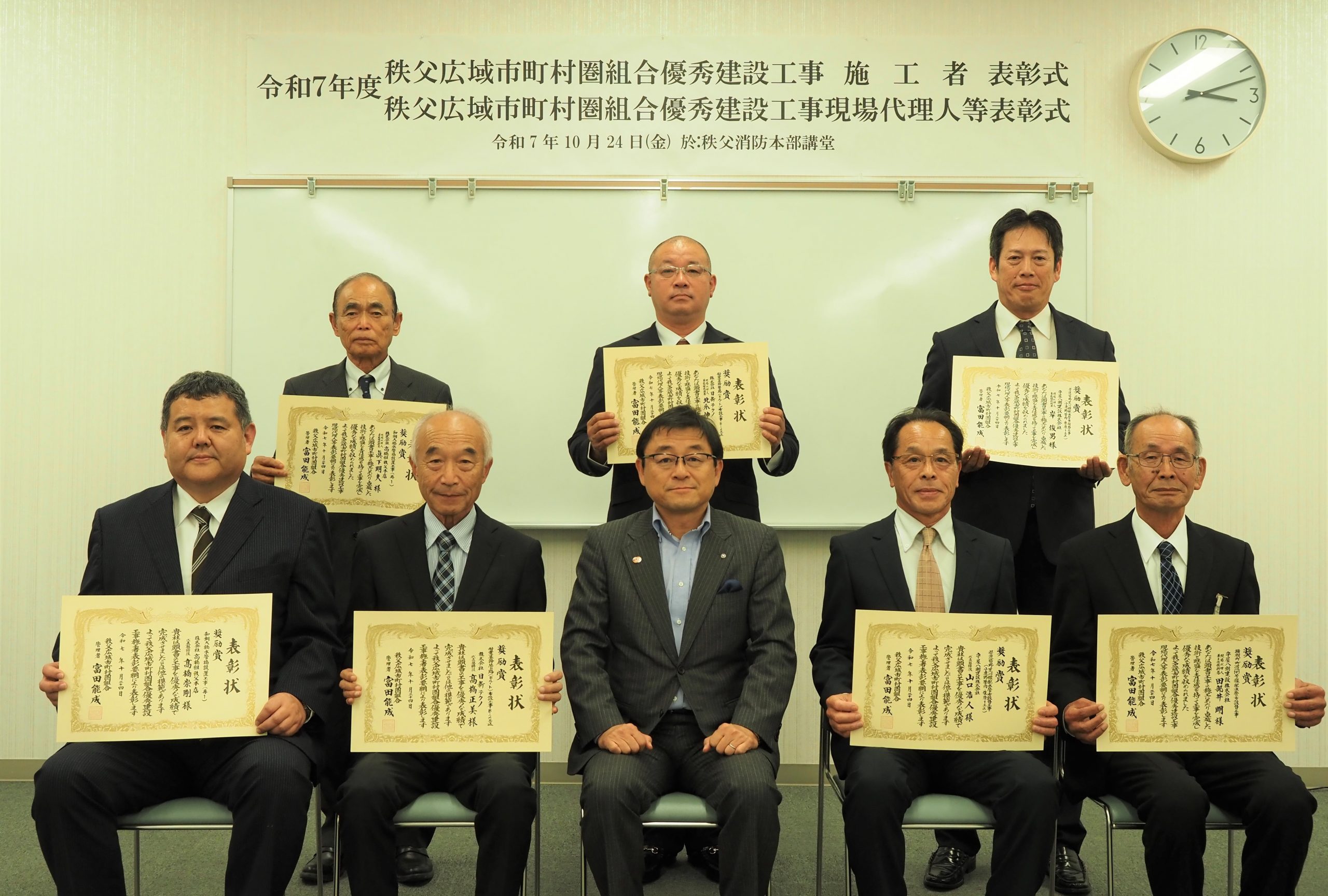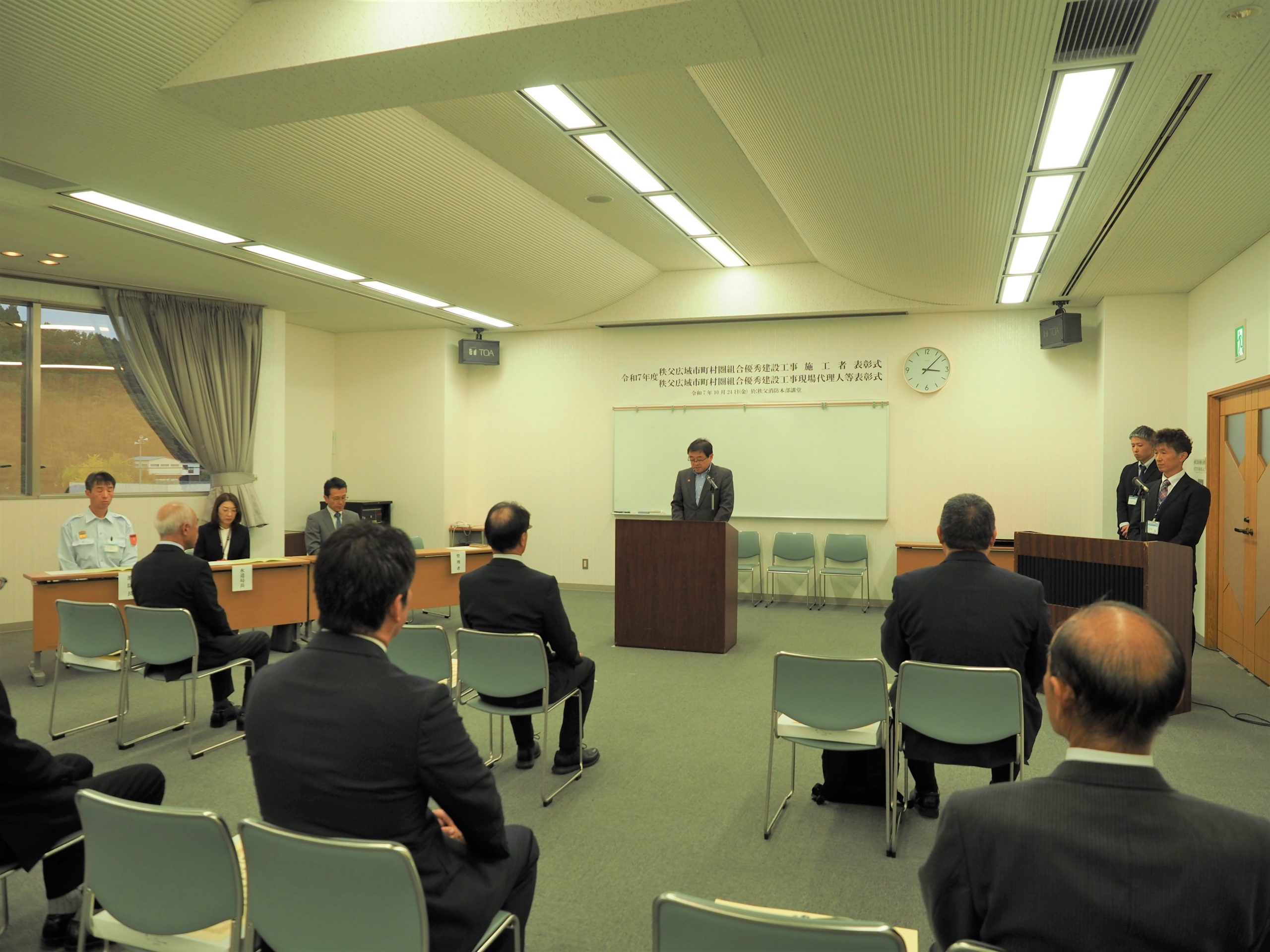 令和7年10月24日、秩父消防本部4階講堂において優秀建設工事の表彰式を行いました。
